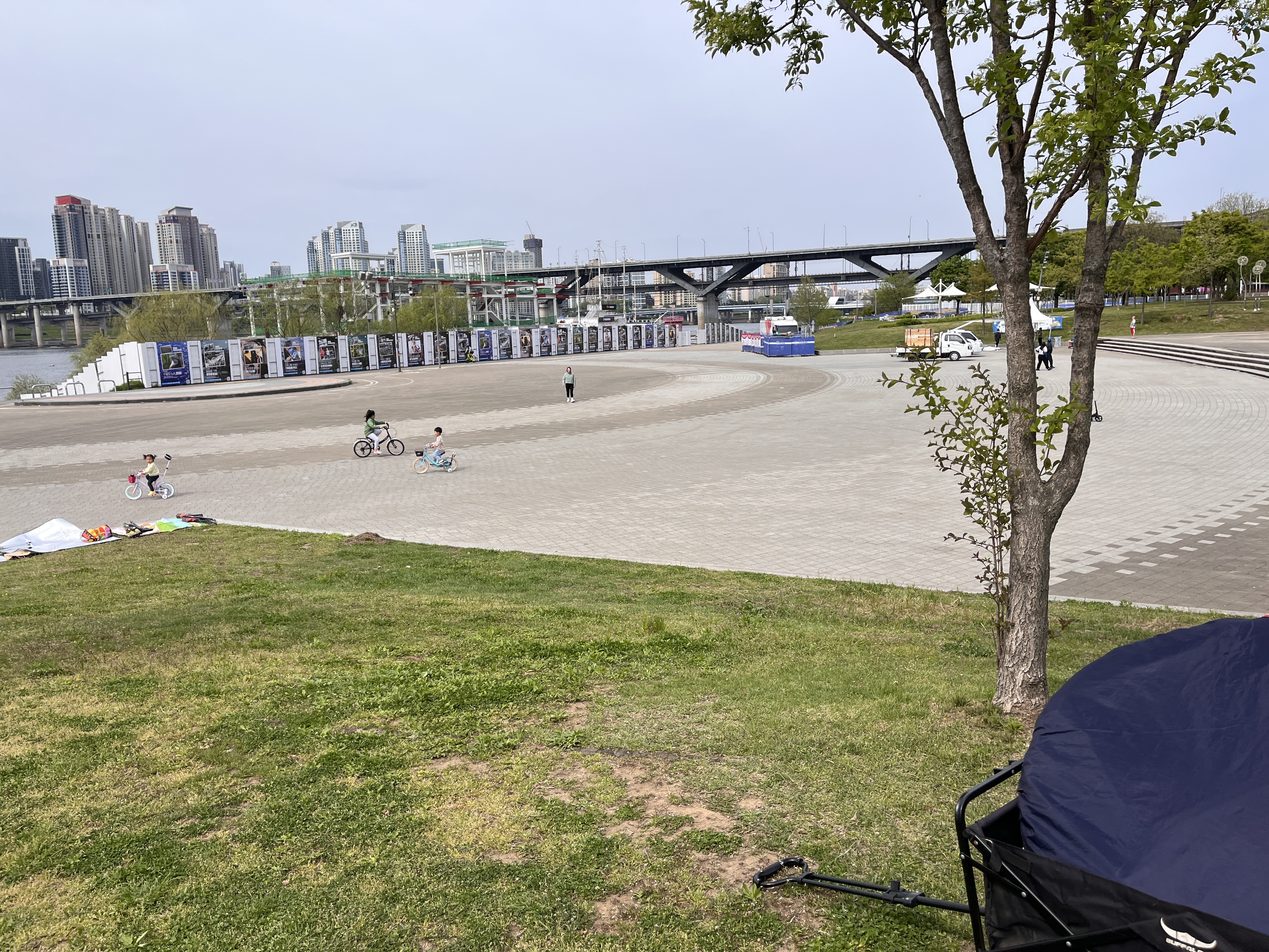 제가 오전에 방문해서 처음 자리 잡은 곳은 수변무대 바로 옆 잔디밭 시작점입니다.