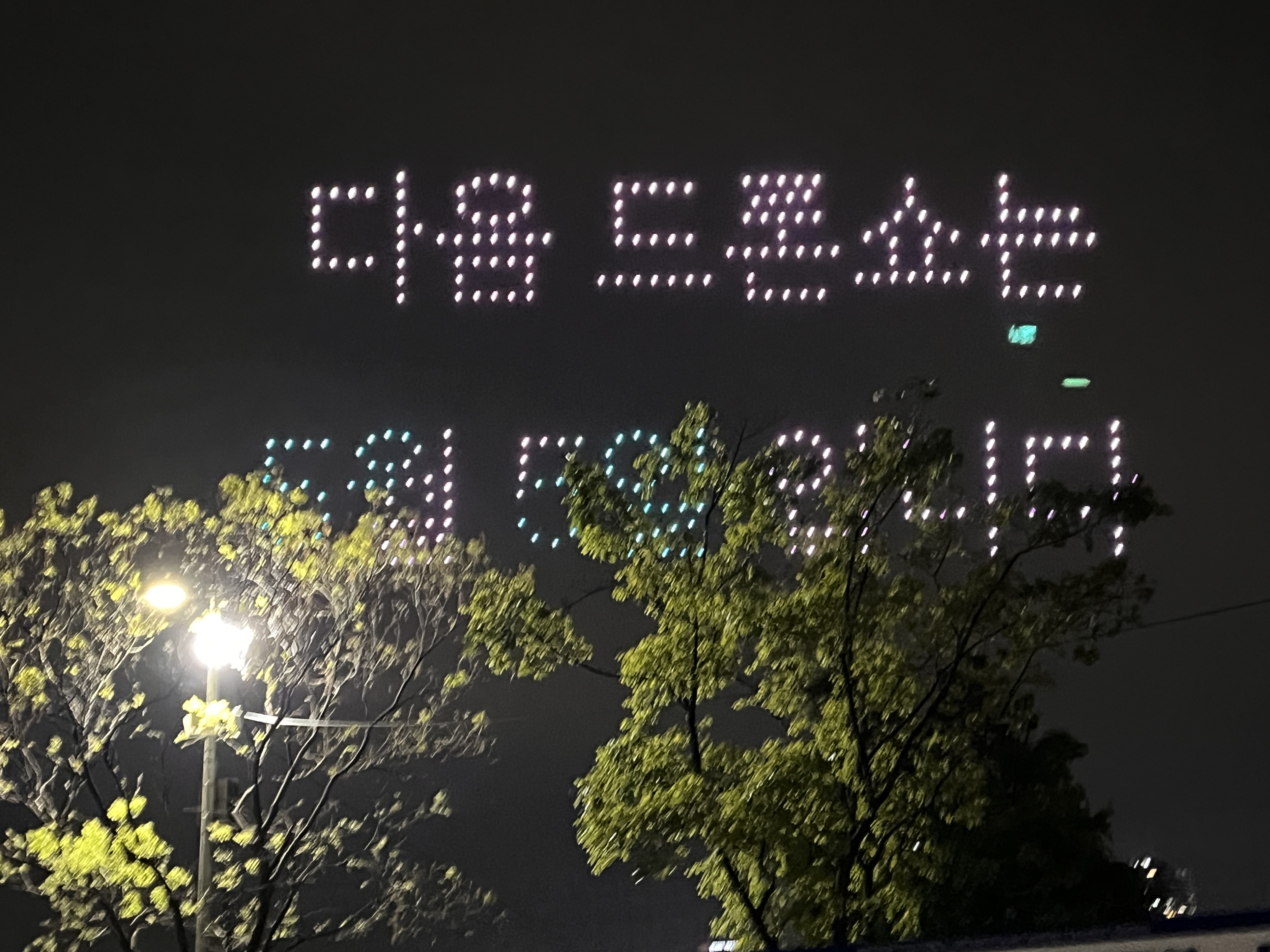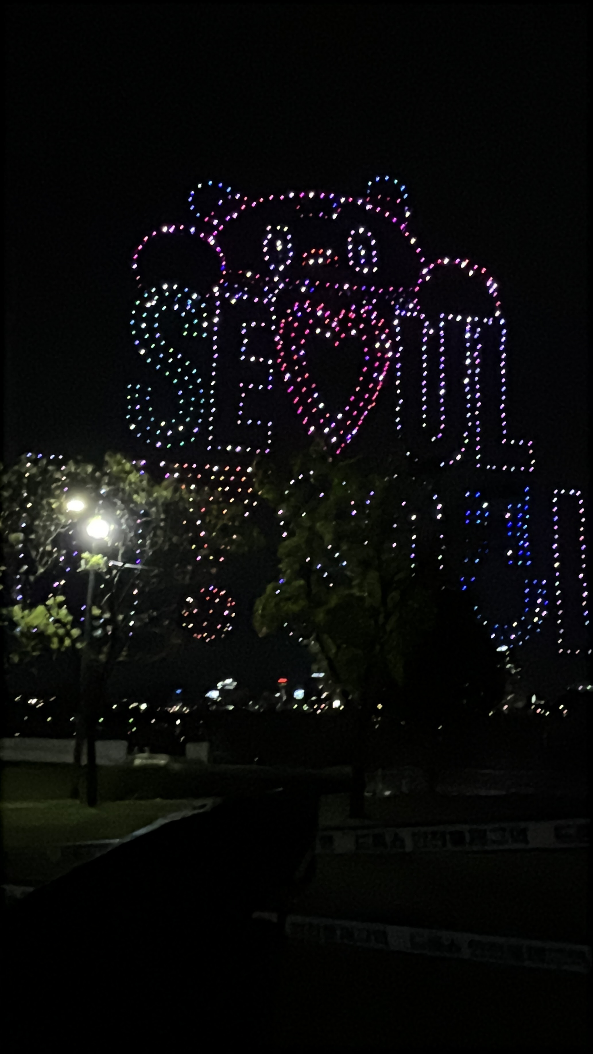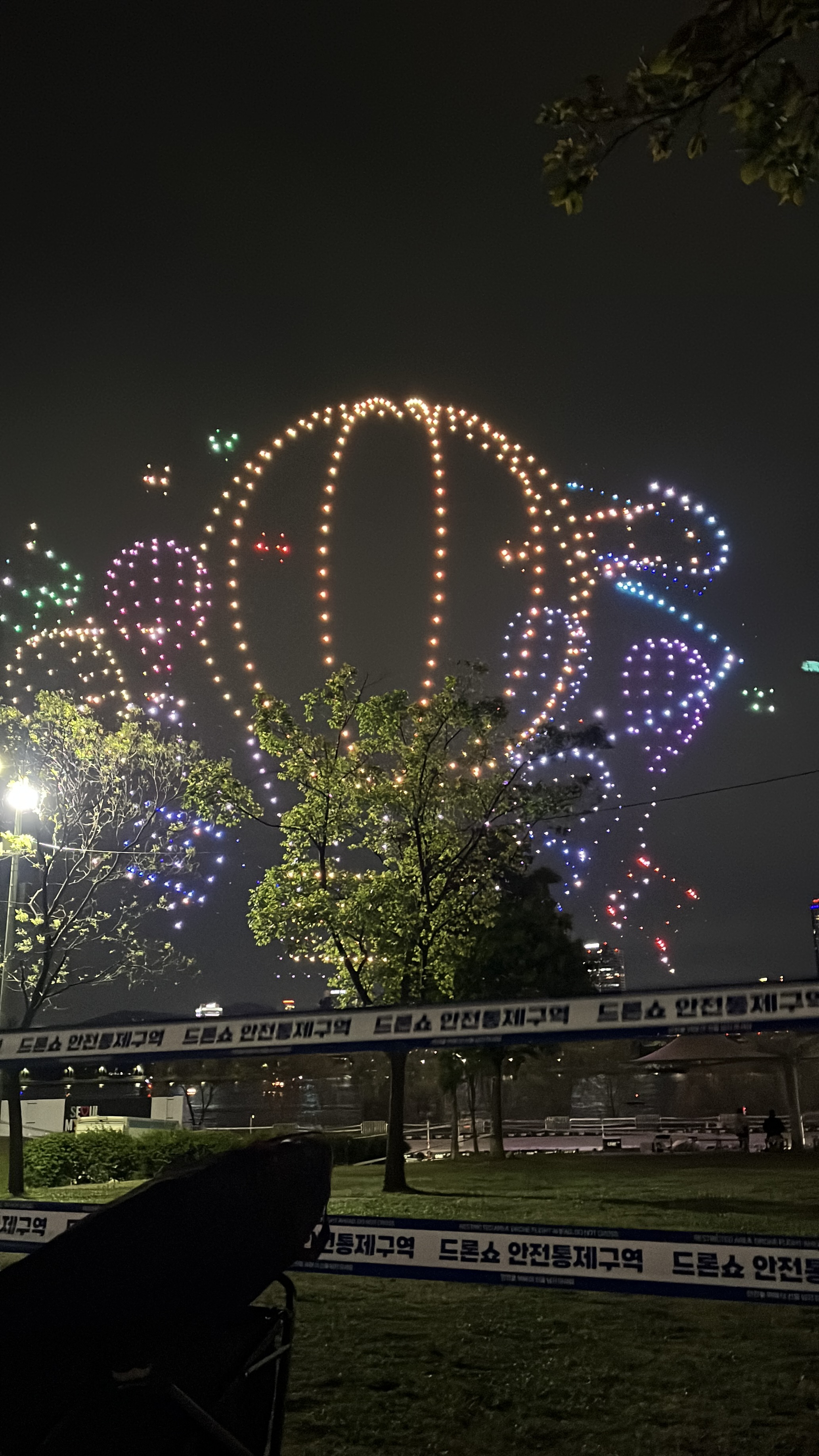 수변광장보다는 제가 앉은 쪽이 드론과 더 가깝긴 하지만 수변 광장쪽에서는 나무 없이 깔끔한 뷰에서 관람이 가능합니다. 드론 라이트쇼가 끝난 이후에는 스태프의 안내에 따라 순차적으로 이동이 가능했습니다. 불꽃축제보다 사람이 많지는 않았지만 지하철역 계단까지 줄이 쫙 있었기 때문에 안전에 유의하셔서 관람 끝난 후 여유로운 이동을 추천드립니다.