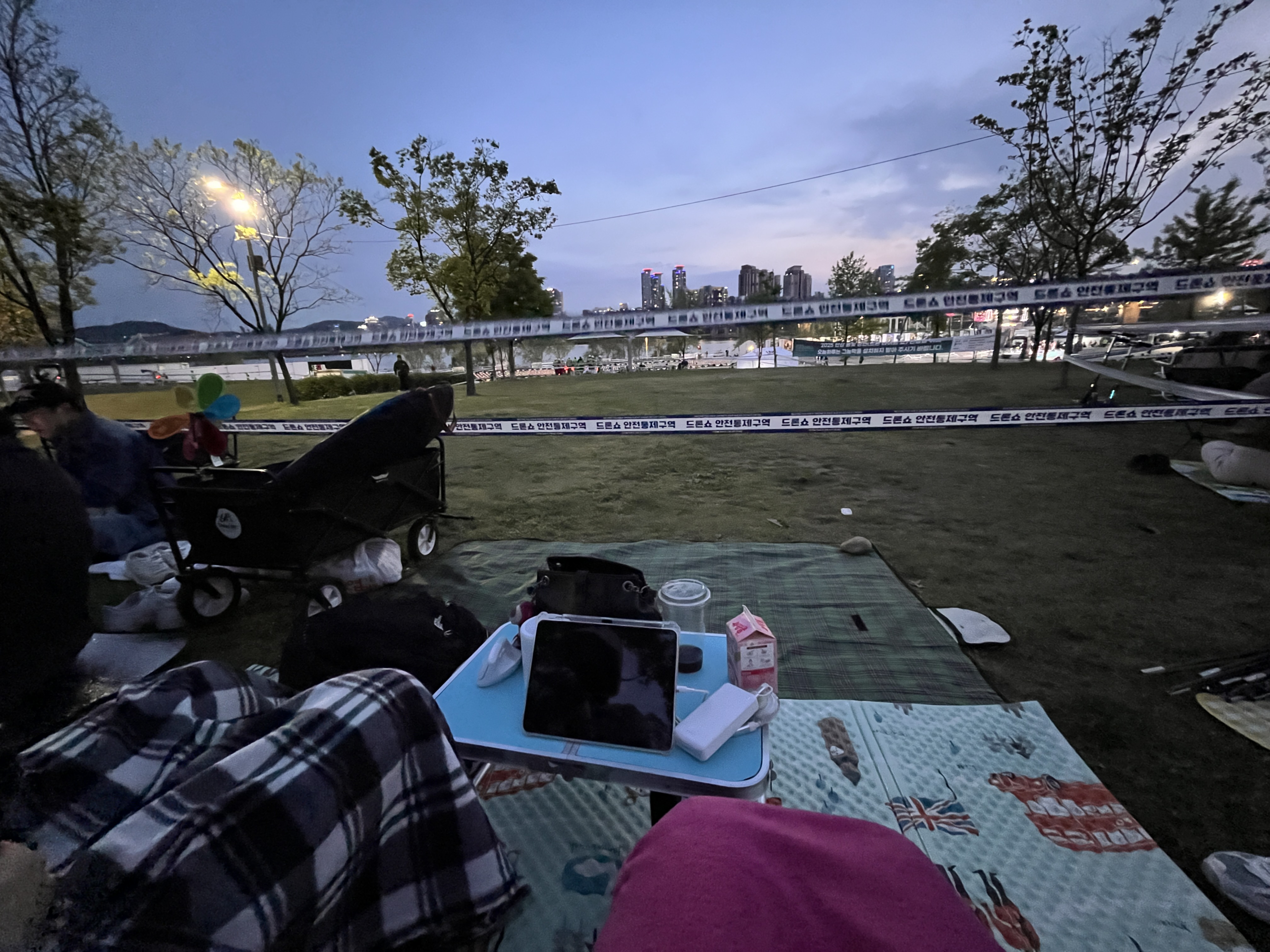 - 준비물 : 핫팩 (아직 밤에는 바람이 찹니다), 담요(저는 2개 챙겼어요), 돗자리