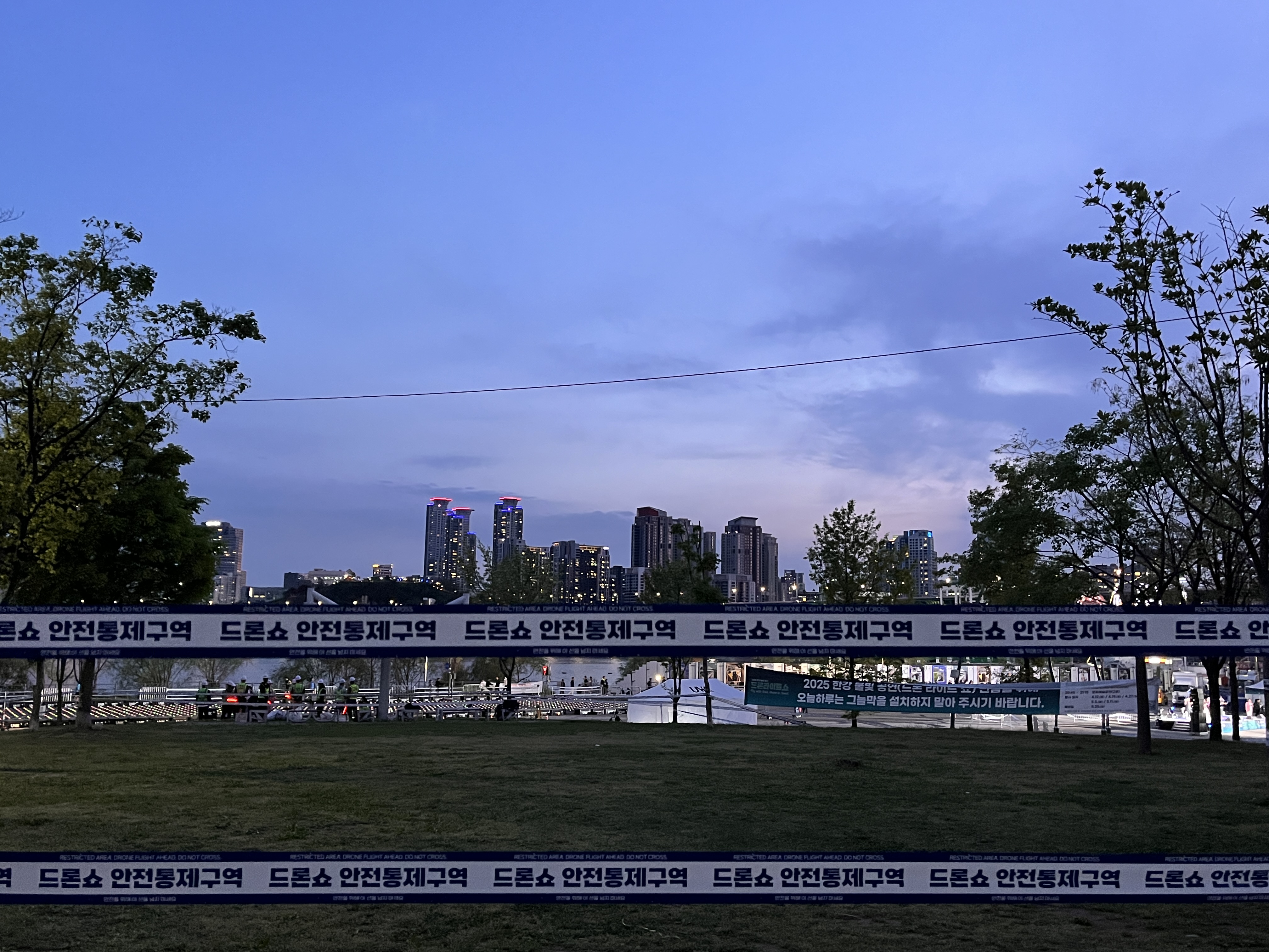 저는 지도에 표시된 뚝섬 딱 요 위치에 앉았는데, 음악분수 앞까지 팬스를 설치해서 앉아서도 볼 수 있고 서서도 볼 수 있고 생각보다 한강공원 어디에 있어도 드론쇼는 보일 것 같았어요